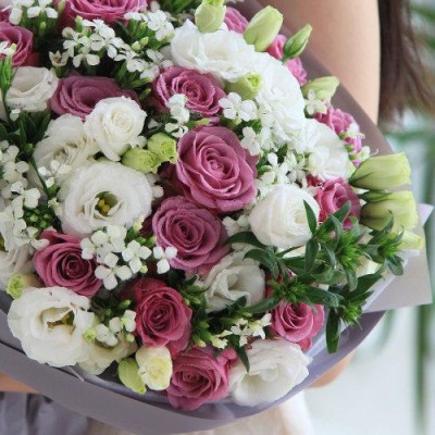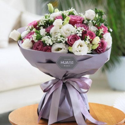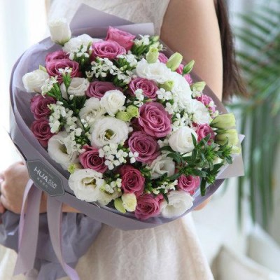 首頁 > 鮮花綠植 > 花禮 > 花禮/紫色的夢/冷美人紫玫瑰19枝,白色桔梗7枝/七夕情人節禮物鮮花送人/提前1天預訂