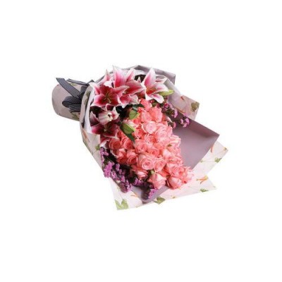 首頁 > 鮮花綠植 > 花禮 > 花禮/甜蜜物語/戴安娜粉玫瑰33枝,多頭粉色香水百合3枝/七夕情人節禮物鮮花送人/當日達