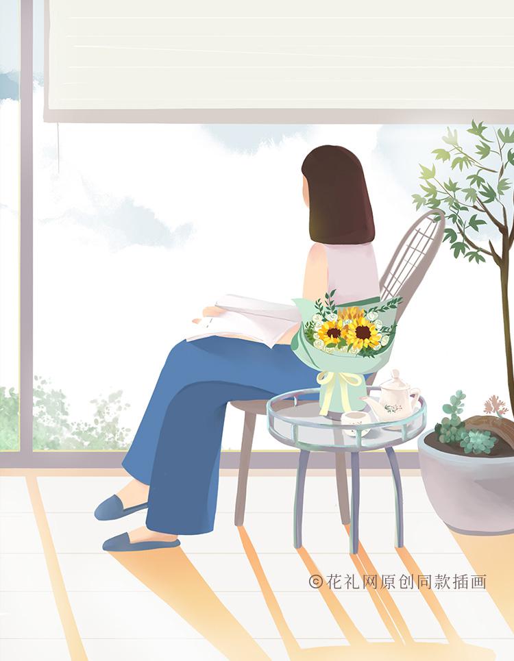 花礼/一缕清香/向日葵、白色洋桔梗/鲜花/七夕情人节礼物鲜花/当日达