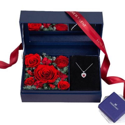 首頁 > 鮮花綠植 > 花歌 > 我如此愛你-永生花玫瑰花+施華洛世奇ONE項鍊浪漫心形項鍊
