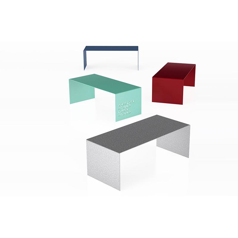 经过精心加工的薄铝板弯曲,使桌面具有整齐的线条和强烈的个性。