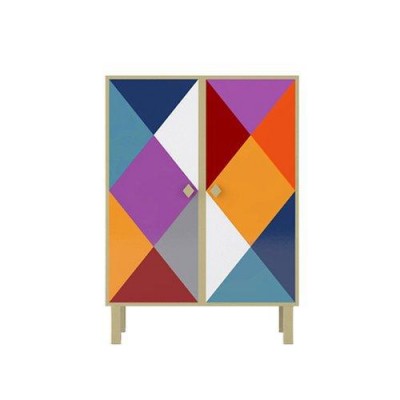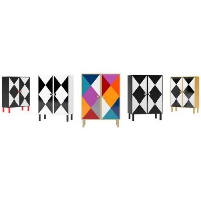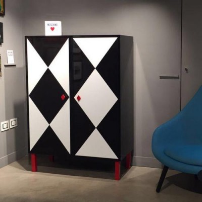 菱形的方块在扑克牌里是钻石的形状,代表着财富。Moschino独特的设计图案的橱柜,和谐地结合优雅和色彩,怪诞又不失典雅。