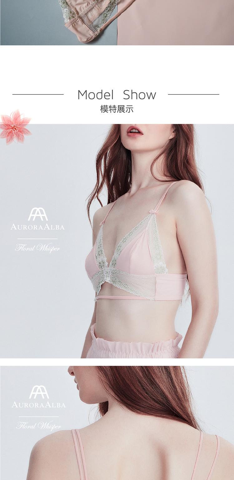 AURORAALBA/AuroraAlba女士文胸FloralWhisper-灰綠花朵蕾絲寬底圍鏤空裸粉三角全杯內衣