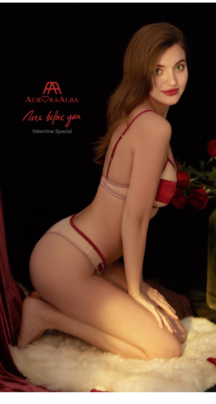 【DesignerWomenwear】AURORAALBA/AuroraAlba情人節限定款寶石紅緞面色丁蝴蝶結鏤空3/4杯內衣(預售14天)