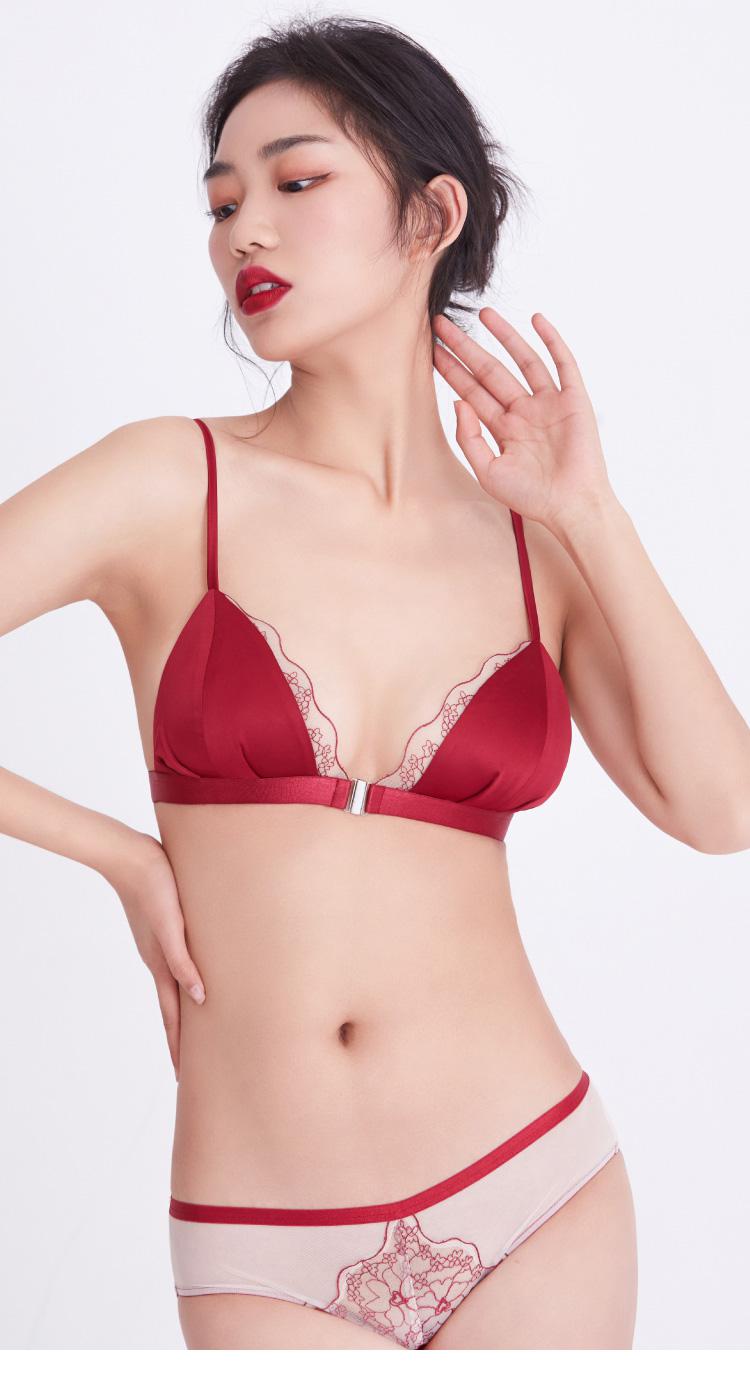 【21春夏】AuroraAlba情人节酒渍玫瑰色三角杯色丁拼刺绣蕾丝花边软杯内衣