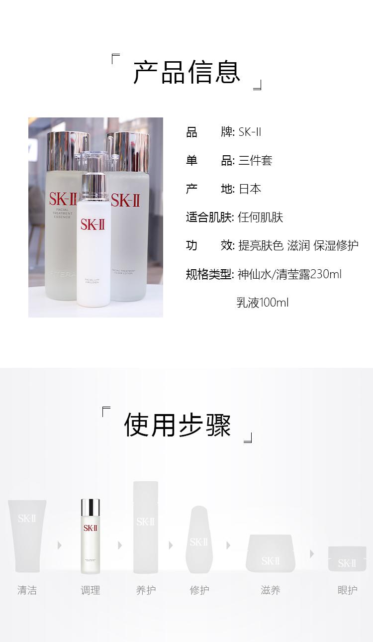 【保稅】SK-II護膚保濕修護三件套神仙水230ml+美膚精緻乳液100ml+嫩膚清瑩露230ml