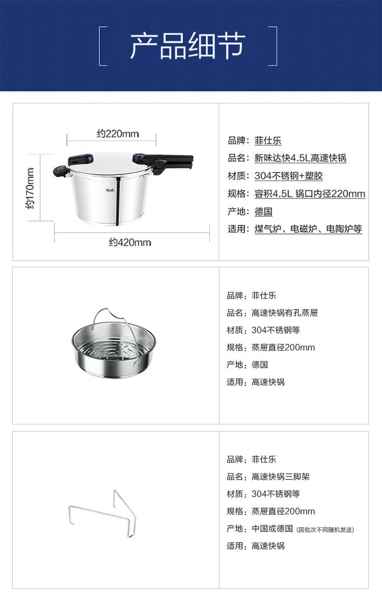 首頁 > 餐具廚具 > 菲仕樂 > Fissler/菲仕樂新味達快22釐米4.5昇高速快鍋