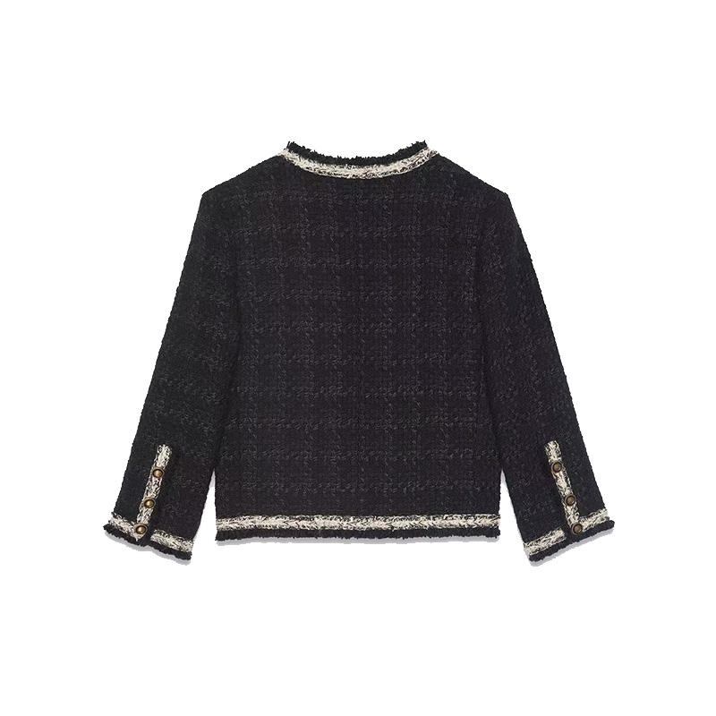 Yves saint Laurent/聖羅蘭女士黑色粗花短款休閒夾克653214 Y5C78 1000