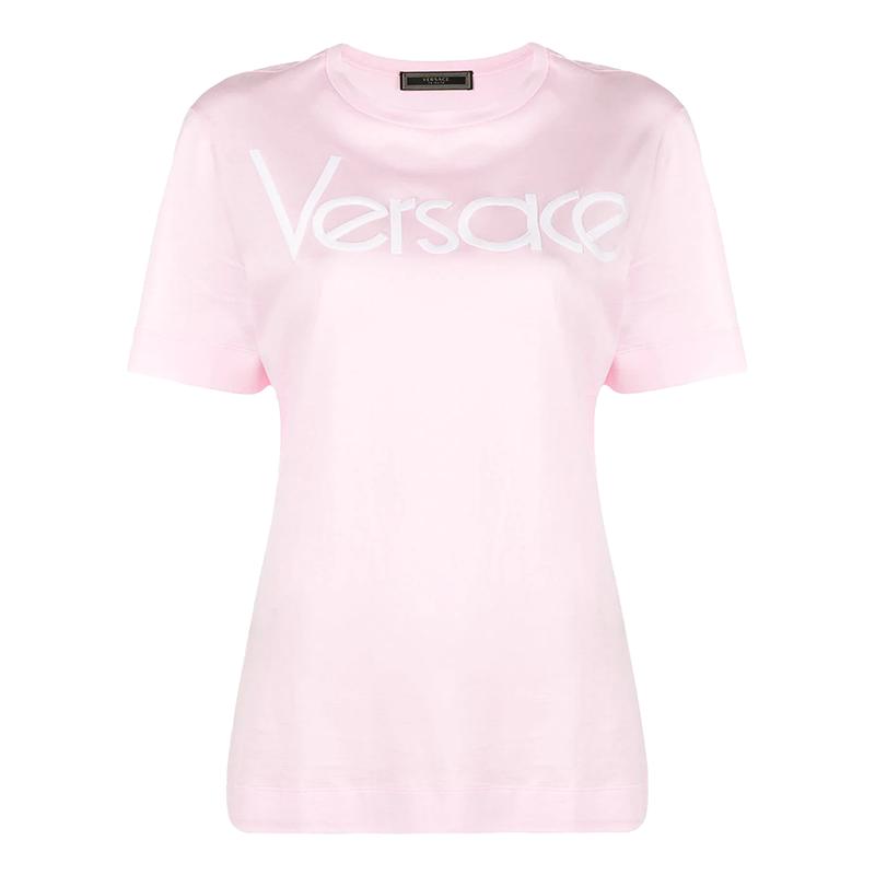 VERSACE/範思哲櫻花粉復古字母女士短袖T恤cb