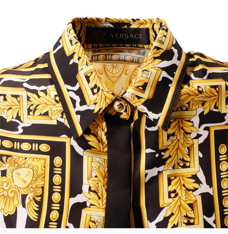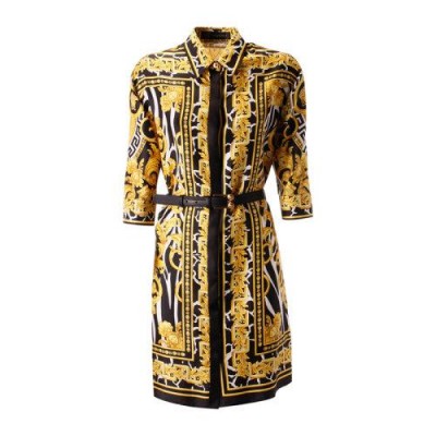VERSACE/範思哲女裝服飾黃色巴羅克印花翻領收腰襯衫裙女士連衣裙