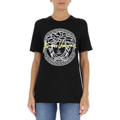 VERSACE 范思哲 女士 服装 21春夏 黑色圆领美杜莎圆领图案棉质T恤 女士短袖T恤