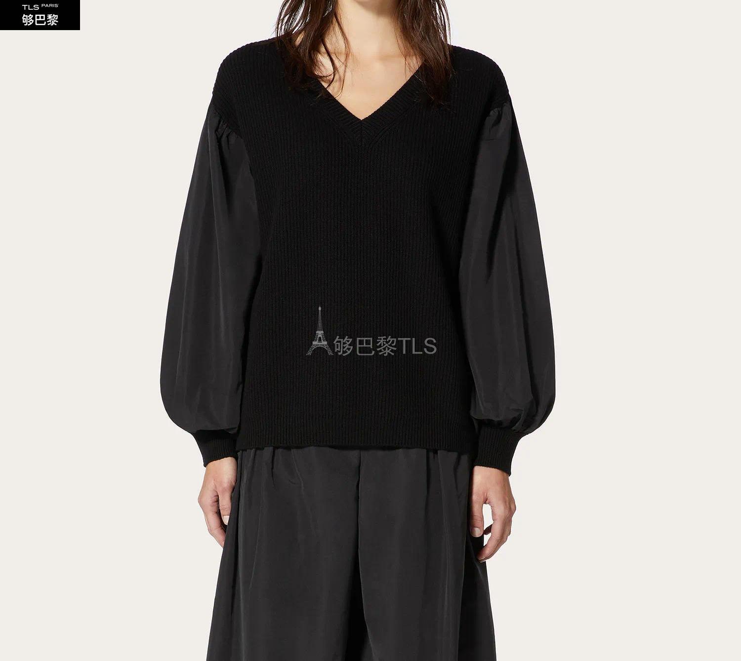 • 【包邮包税】 VALENTINO华伦天奴 21年春夏 女士 针织衫 羊绒羊毛和细罗缎卫衣 TB3KC10E59G0NO 预定商品1-3周发货