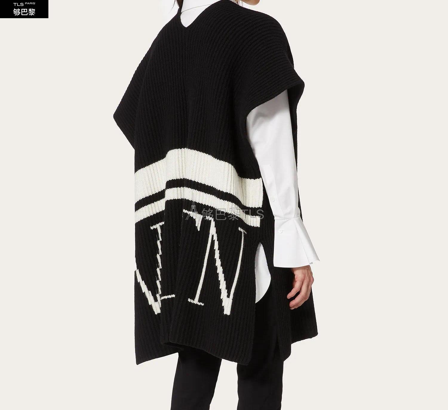 • 【包邮包税】 VALENTINO华伦天奴 21年春夏 女士 针织衫 VLTN 嵌花编织羊毛斗篷 UB3KSA055TK0NA 预定商品1-3周发货