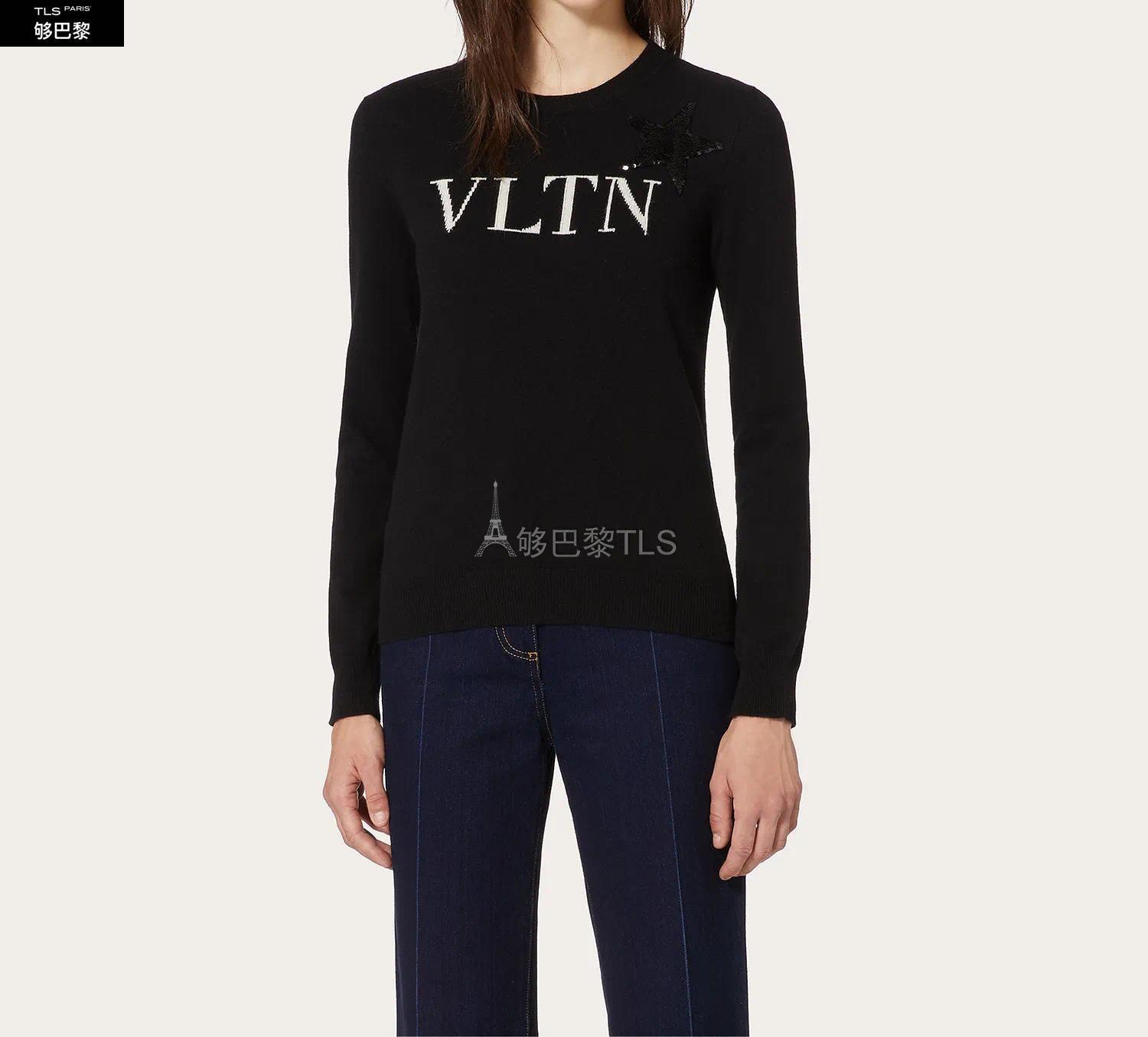 【包郵包稅】VALENTINO華倫天奴21年春夏女士針織衫羊絨羊毛嵌花衛衣UB3KCB605NT0NA預定商品1-3周發貨