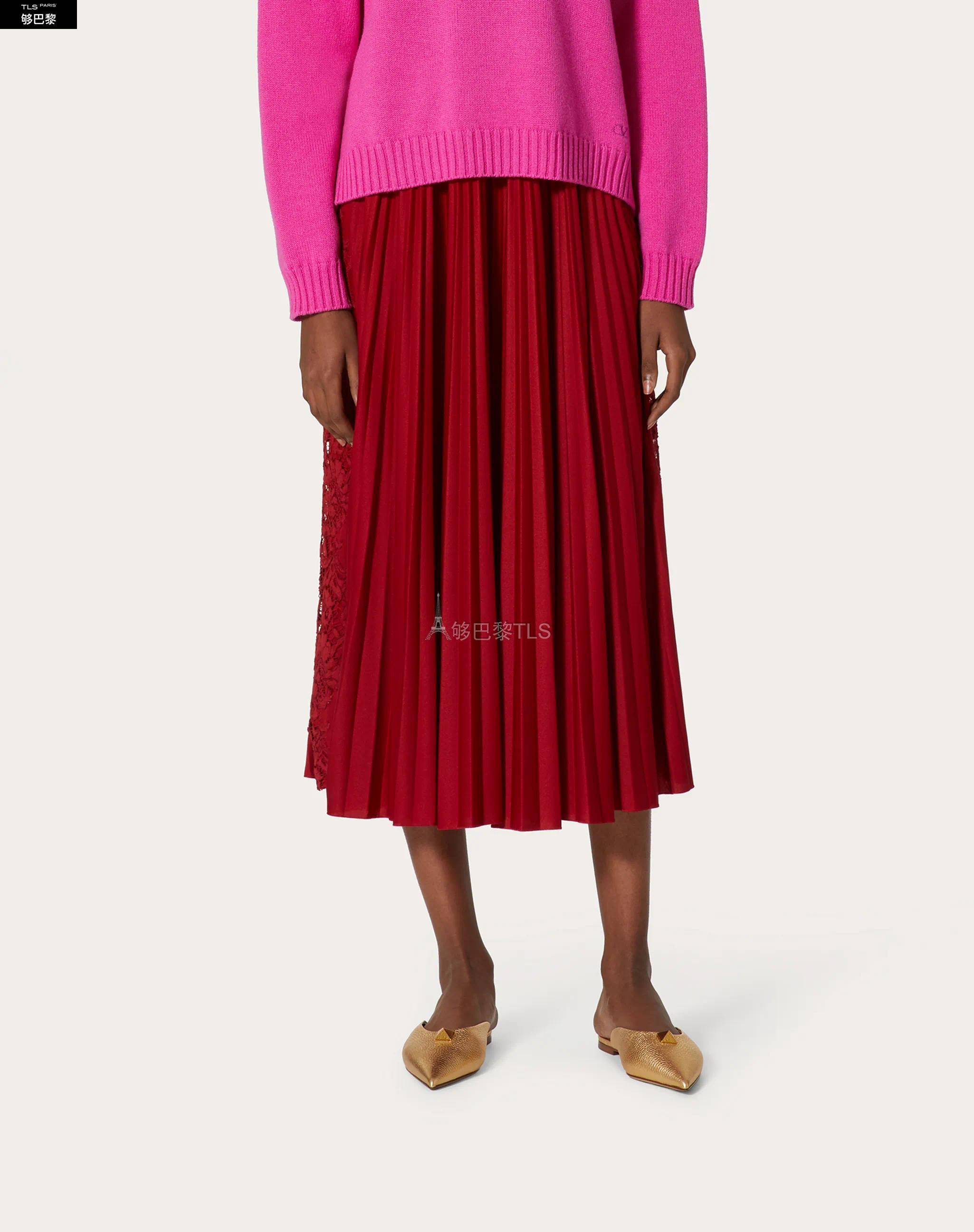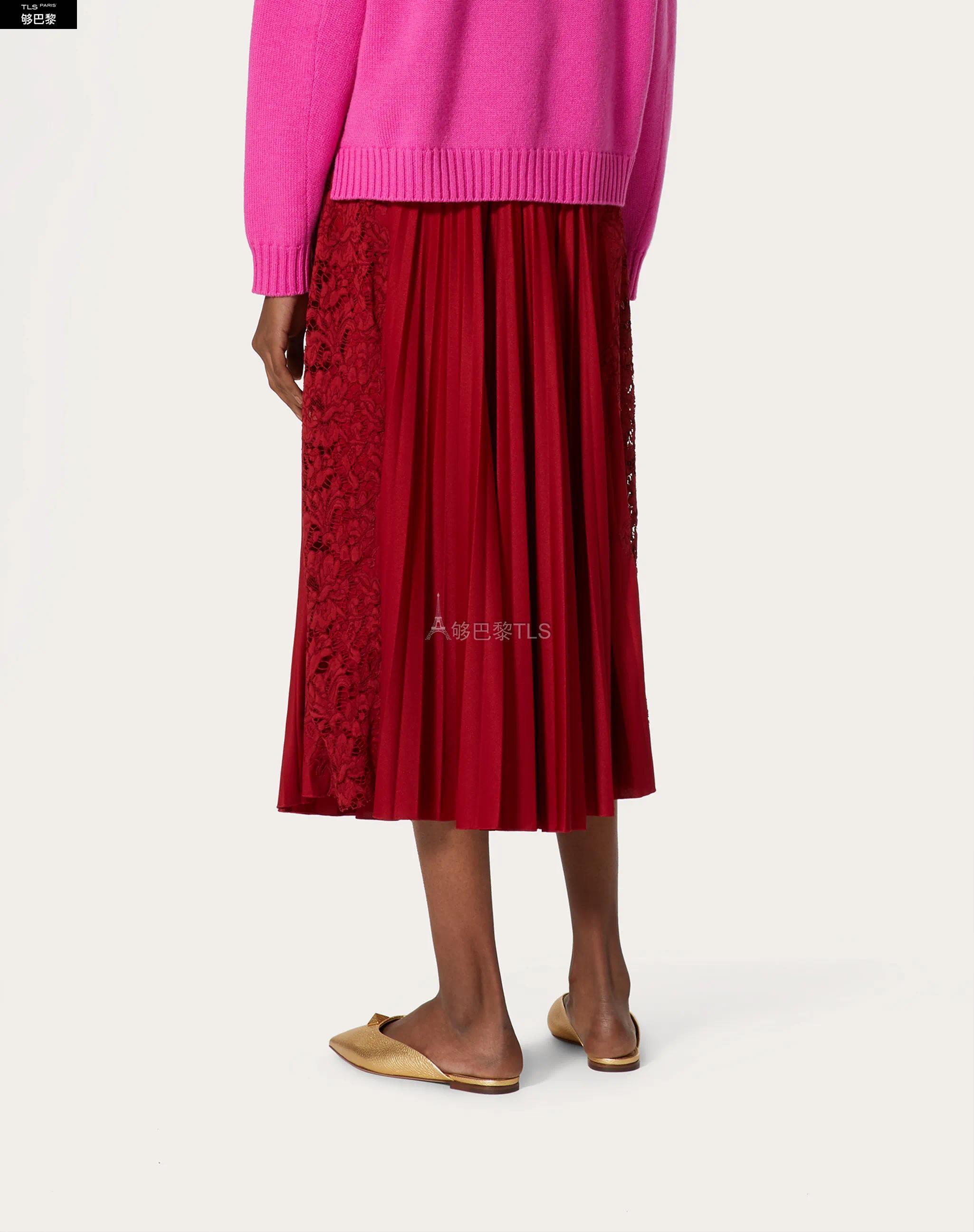 首頁 > 女裝 > 華倫天奴 > 【包郵包稅】VALENTINO華倫天奴21年春夏女士半身裙JUPE PLISSéE EN JERSEY ET DENTELLE VB3MD02T668S預定商品1-3周發貨