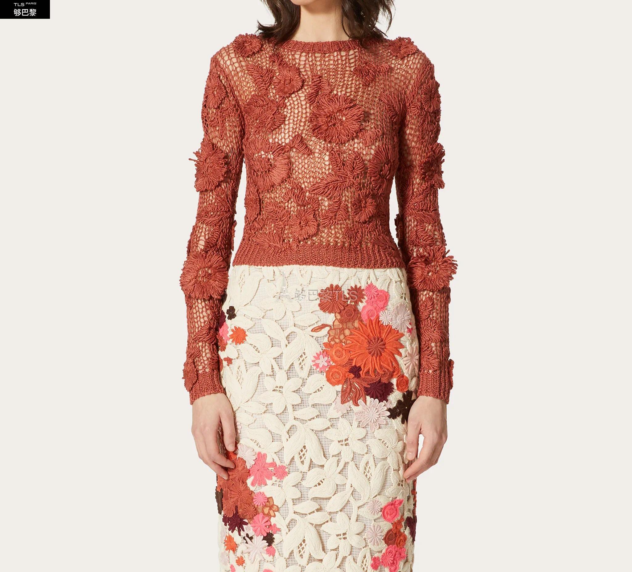 • 【包邮包税】 VALENTINO华伦天奴 21年春夏 女士 针织衫 PULL EN LIN BRODé VB0KC22Z6C0406 预定商品1-3周发货