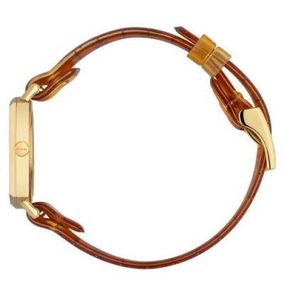 • 黄金PVD表壳,两块白色表盘指示小时和分钟,透明的焦糖色再生橡胶表带,金色GG图案