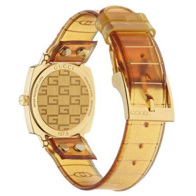 【包税】预订款1个月 GUCCI/古驰 女士石英机芯黄金PVD表壳与透明的焦糖色再生橡胶表带GG印花Grip手表27毫米663933I86108573
