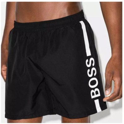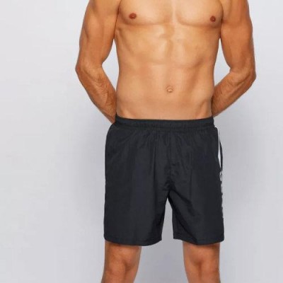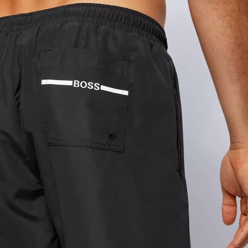 HUGO BOSS/雨果博斯【21春夏】男士黑色微标印花饰尼龙休闲运动沙滩裤短裤【爆款主推现货】