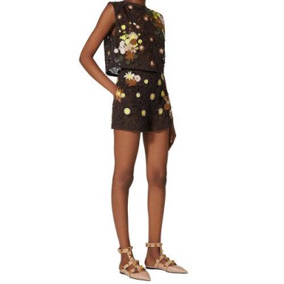 【包稅】Valentino/華倫天奴21年春夏新款女士烏木色/多色棉質繡花花卉瑪格麗特上衣VB0AE5X03QGW39