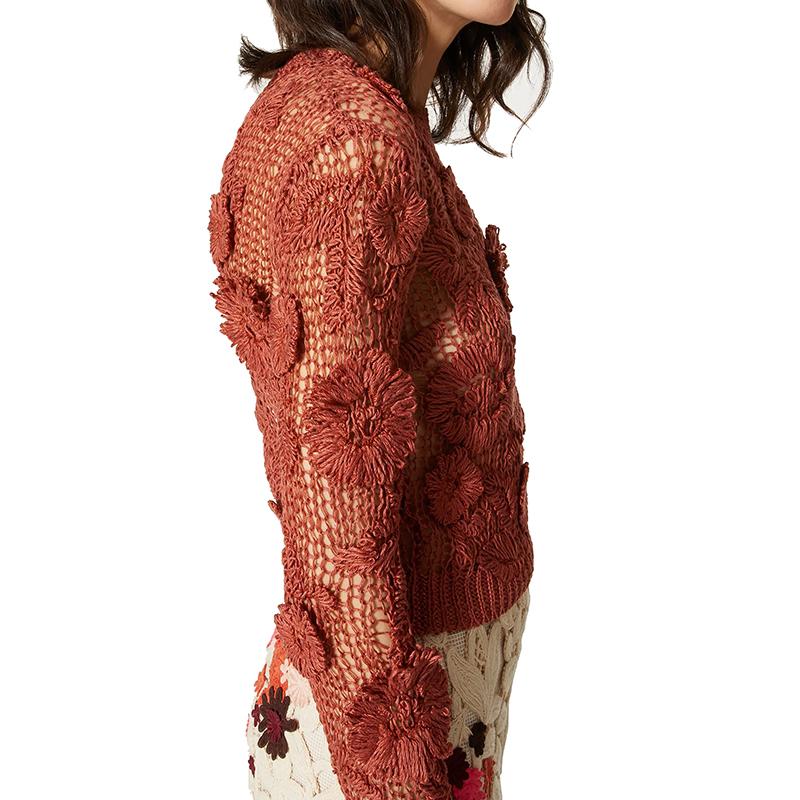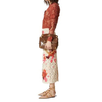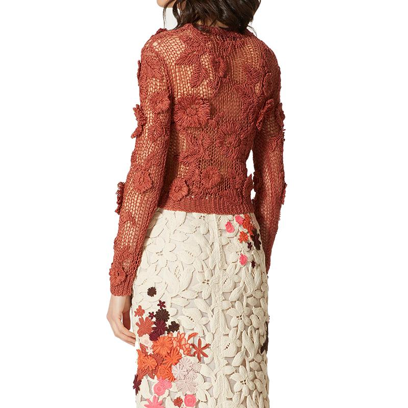 【包税】Valentino/华伦天奴 21年春夏新款 女士橙色亚麻刺绣亚麻毛衣VB0KC22Z6C0406