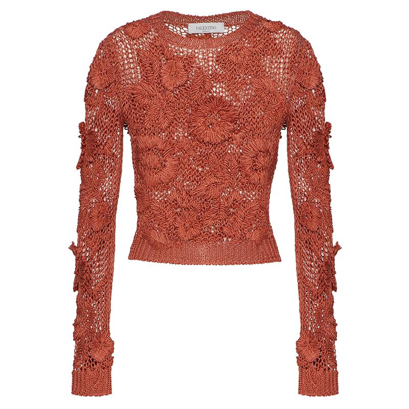 首頁 > 女裝 > 華倫天奴 > 【包稅】Valentino/華倫天奴21年春夏新款女士橙色亞麻刺繡亞麻毛衣VB0KC22Z6C0406