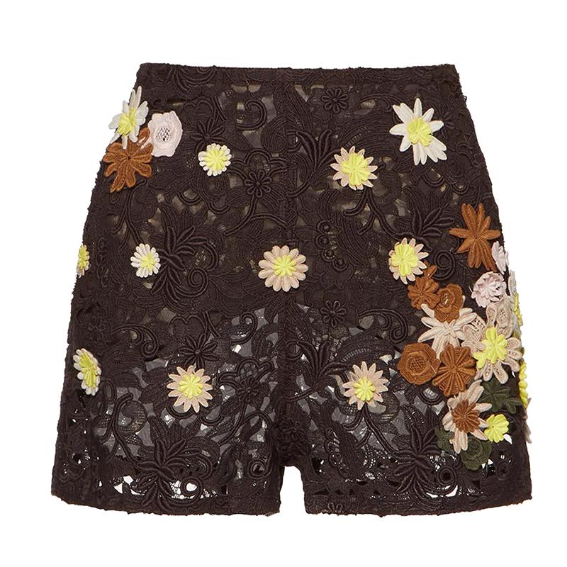 【包稅】Valentino/華倫天奴21年春夏新款女士烏木色/多色棉質刺繡花朵花卉短褲VB0AE5X03QGW39