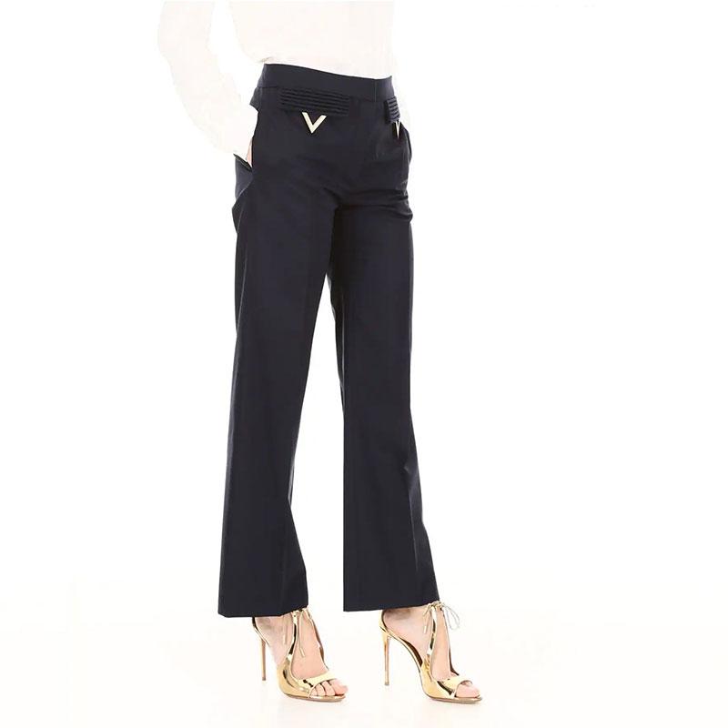 【包郵包稅】Valentino/華倫天奴女褲時尚百搭女士藍色羊毛休閒褲RB3RB2V54FD 598 HKY012345C