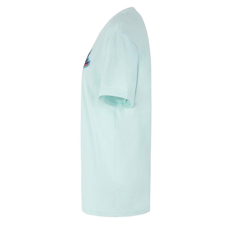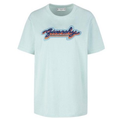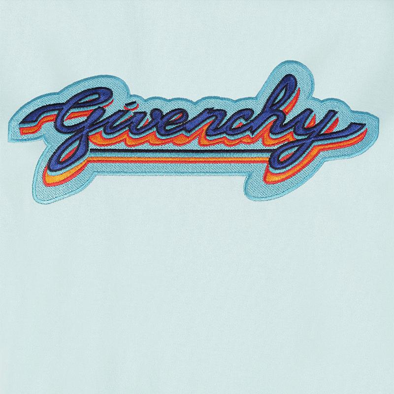 淡蓝色针织T恤,胸前饰有蓝色和红色GIVENCHY饰片刺绣。