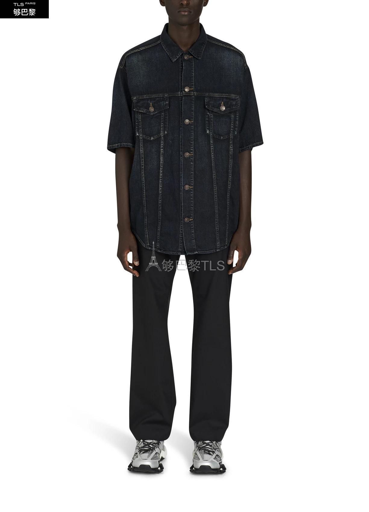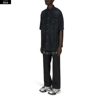 【包郵包稅】BALENCIAGA巴黎世家21年春夏男士夾克輕便日本牛仔襯衫BAL3WD42BLU預定商品1-3周發貨