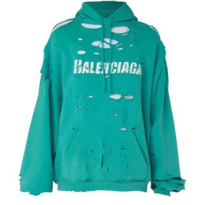 【包郵包稅】BALENCIAGA巴黎世家21年春夏男士衛衣Destroyed系列連帽衫BAL7THNRBLU預定商品1-3周發貨