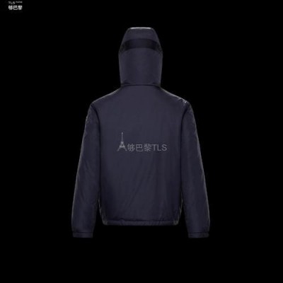 Blouson pour homme en nylon technique a capucheFermeture sur le devant par zip en metal Fermeture des poches interieures et exterieures par zip a spiraleFermeture des poignets par boutons-pression bombes et personnalises Logo Moncler en cuirLongueur courte