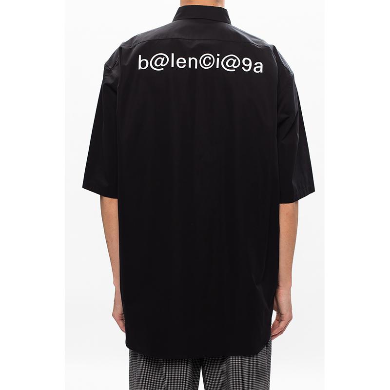 Balenciaga/巴黎世家21春夏男士短袖襯衫口袋B字刺繡背面字母膠印黑色621912TIM39 1000【現貨】
