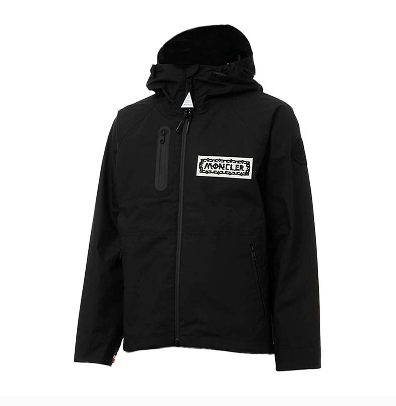 Moncler/蒙克萊男裝服飾黑色連帽經典logo款休閒外套男士夾克