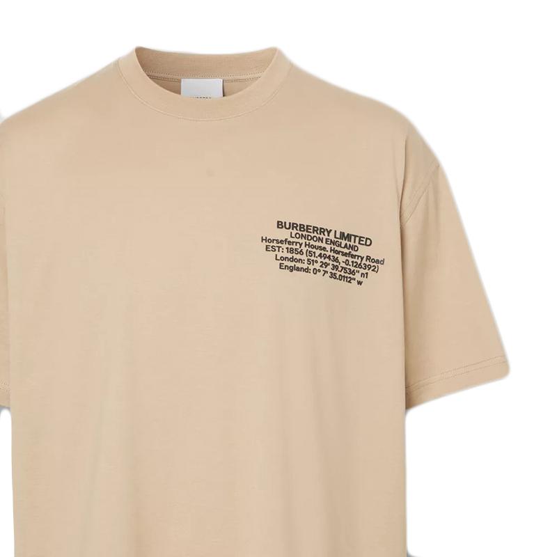 【包稅】BURBERRY/博柏利21年春夏新款男士柔黃褐色超大號純棉地理座標T恤80432751