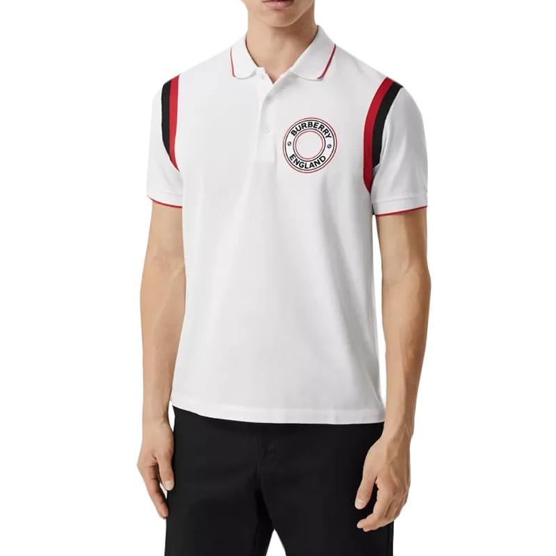 【包税】BURBERRY/博柏利 男士白色饰有徽标贴花的棉质piqué短袖POLO衫80370491