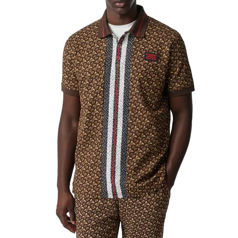 【包税】BURBERRY/博柏利 经典款 男士棕色棉质会标条纹piqué短袖polo衫80182621