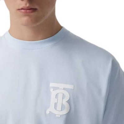 【包稅】BURBERRY/博柏利經典款男士淺藍色專屬標識圖案棉質寬鬆T恤衫80400621