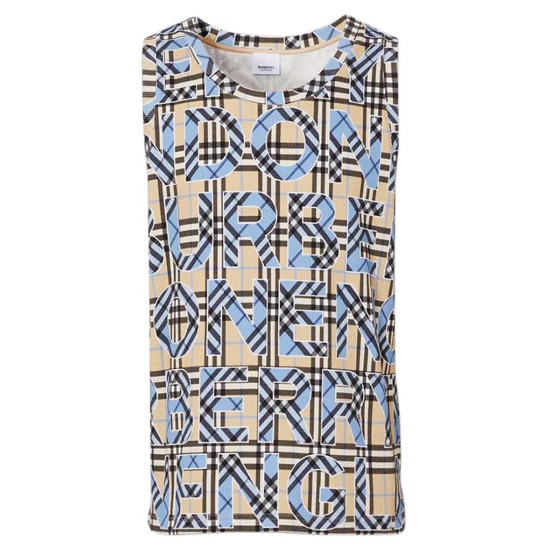 【包稅】BURBERRY/博柏利21年春夏新款男士亮鈷色徽標印花格紋彈力棉背心80392301