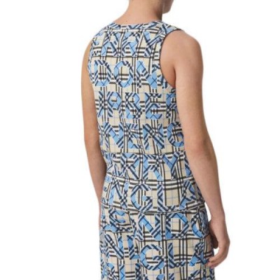【包税】BURBERRY/博柏利 21年春夏新款 男士亮钴色徽标印花格纹弹力棉背心80392301