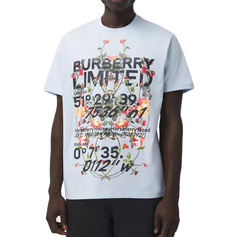 【包稅】BURBERRY/博柏利21年春夏新款男士淺藍色蒙太奇印花棉質寬鬆T恤衫80374681