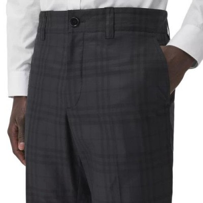 【包稅】BURBERRY/博柏利21秋冬新款男士黑色格紋棉質量裁九分褲80407111
