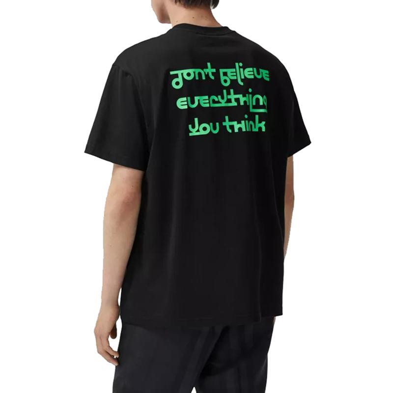 【包税】BURBERRY/博柏利 经典款 男士黑色标语印花棉质宽松 T 恤80370911