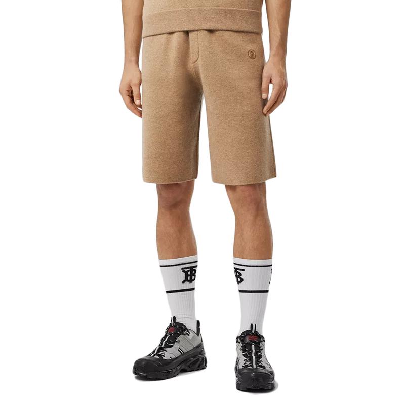 【包税】BURBERRY/博柏利 21年春夏新款 男士浅咖啡色专属标识图案羊绒抽绳短裤80393031