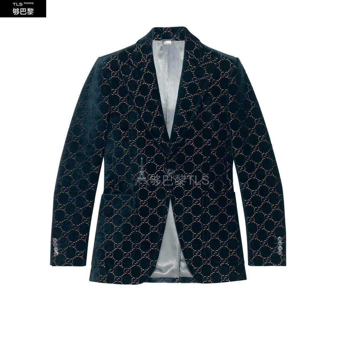 这款正式夹克采用将GG品牌标识融入柔软天鹅绒的经典面料制成。天鹅绒的使用表达了对Gucci传统的尊敬,也证明了经典元素能超越的界限持续散发光热。