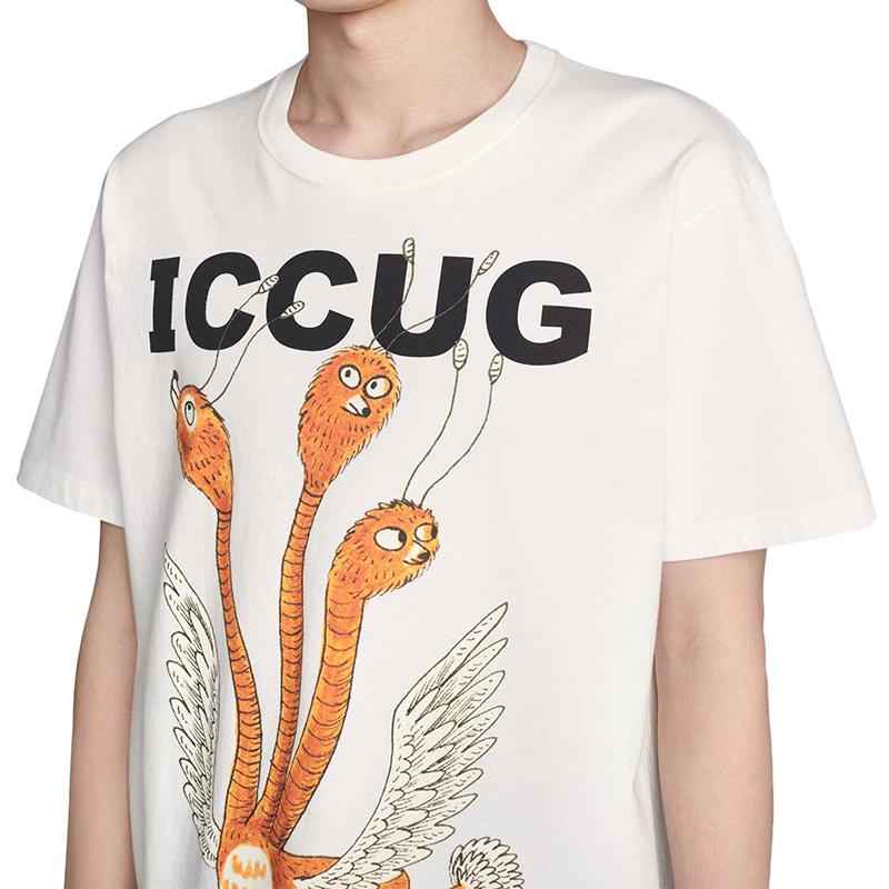 【包稅】預訂款1-2周GUCCI/古馳21年春夏新款Freya Hartas系列男士白色棉質動物印花T恤548334XJDJV9095