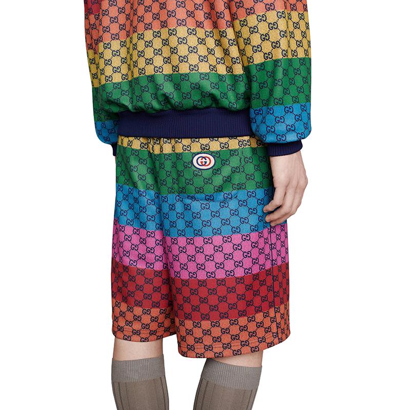 在GG Multicolor胶囊系列中,原始的会标图案是近一个世纪以来富有创造力的创作基础,上面装饰着蓝色,并装饰了一系列成衣,手袋以及鲜艳的配饰。在这里,颜色组合在一起,以对比色图案装饰了这些技术平针织短裤。