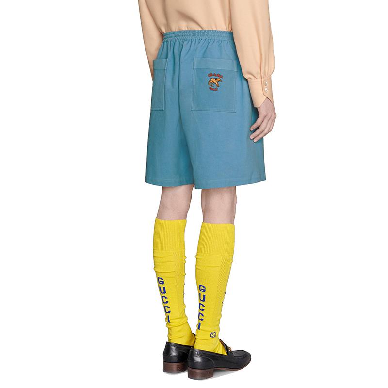 【包税】GUCCI/古驰 2021年新款男士蓝色帆布棉短裤 659825ZAGP54371
