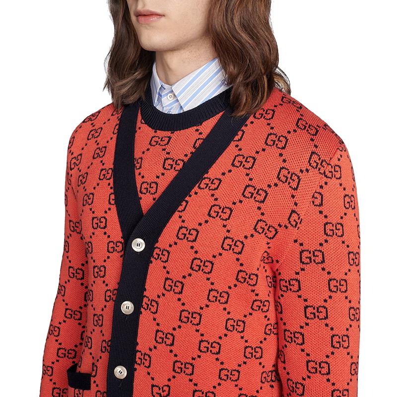 【包稅】GUCCI/古馳2021年新款男士橙色羊毛開衫661156XKBXI7548