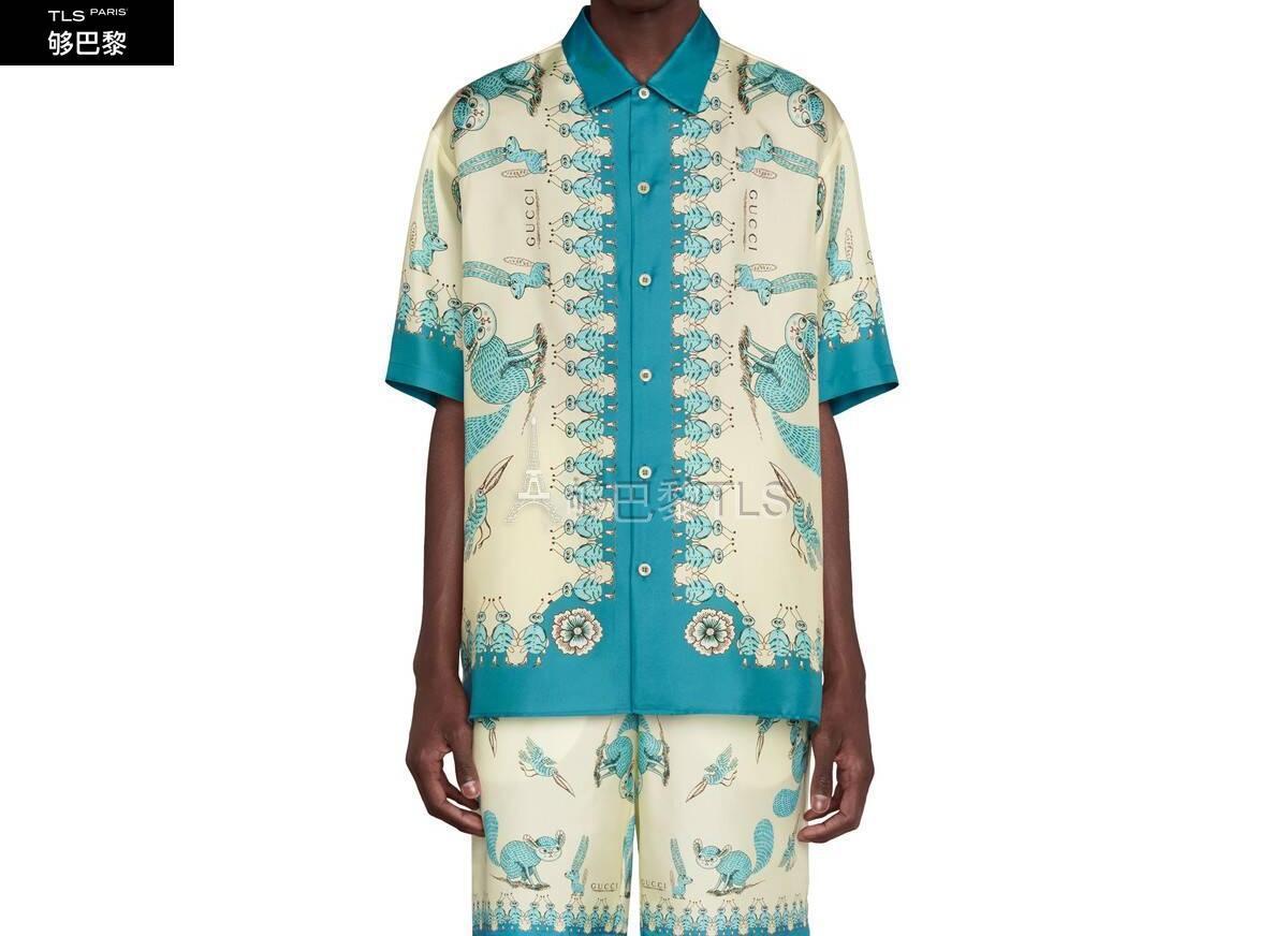 【包郵包稅】GUCCI古馳21年春夏男士Freya Hartas印花斜紋真絲襯衫654886 ZAGWY 4262